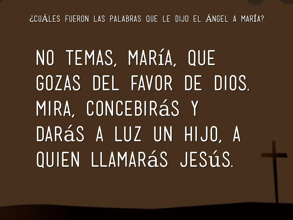 - No temas, María, que gozas del favor de Dios. Mira, concebirás y darás a luz un hijo, a quien llamarás Jesús.