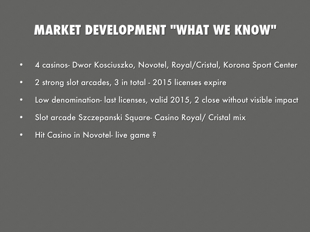 MARKET DEVELOPMENT "WHAT WE KNOW"
