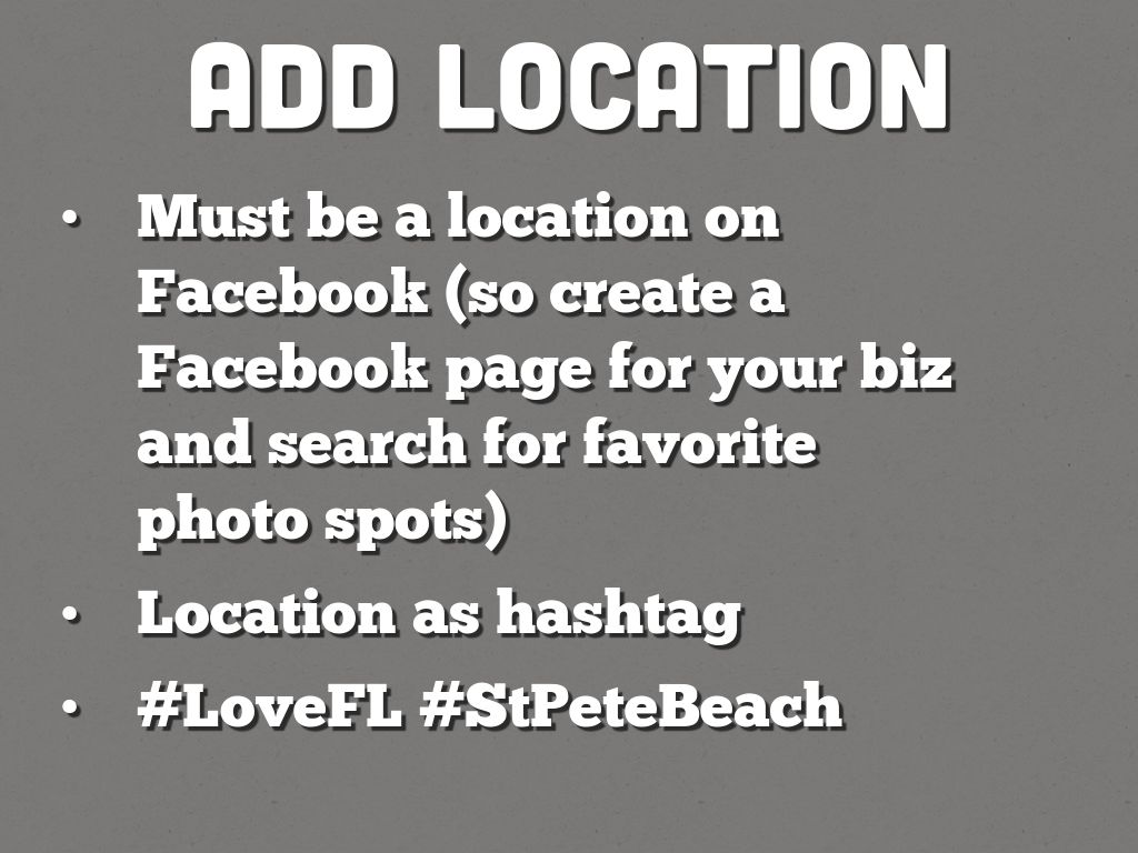 Must be a location on Facebook (so create a Facebook page for your biz and search for favorite photo spots)