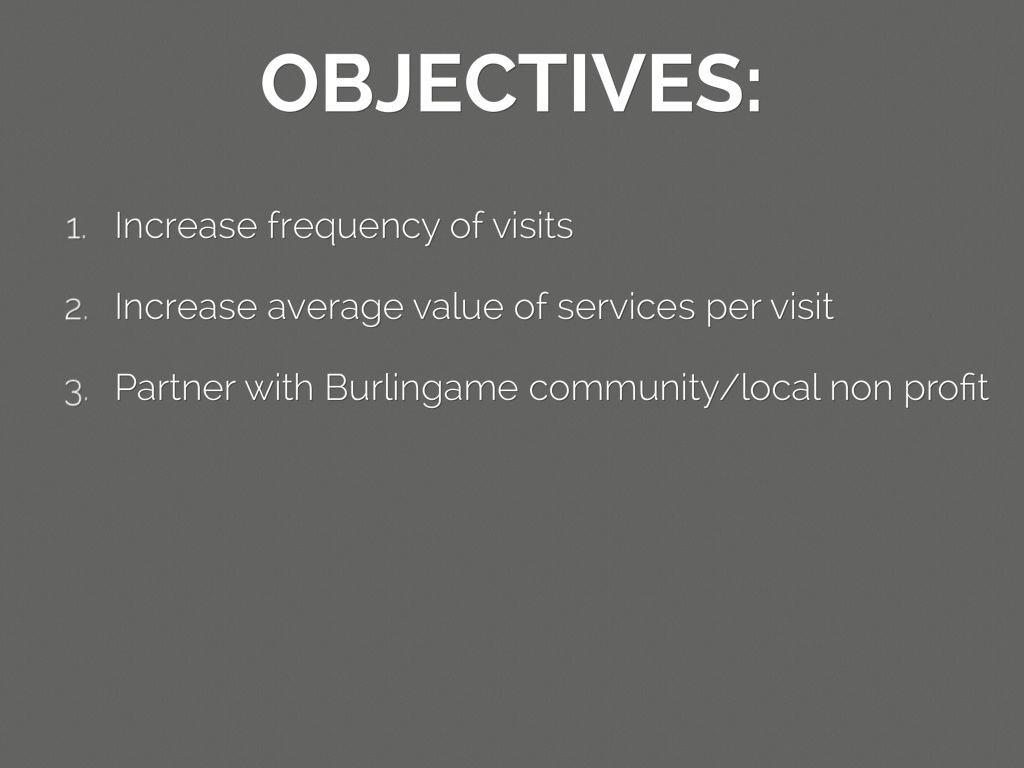 • Increase average value of services per visit