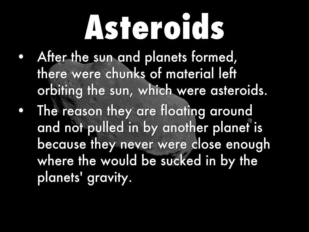 After the sun and planets formed, there were chunks of material left orbiting the sun, which were asteroids.