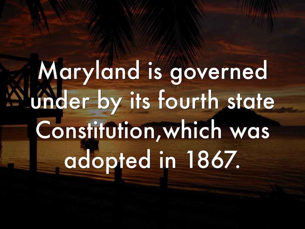 Maryland is governed under by its fourth state Constitution,which was adopted in 1867.