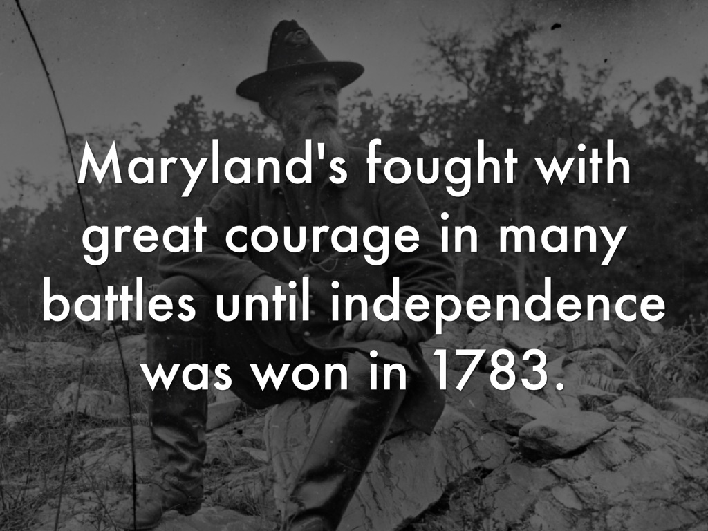Maryland's fought with great courage in many battles until independence was won in 1783.