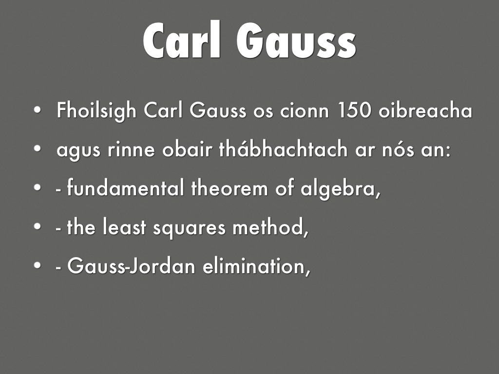 • Fhoilsigh Carl Gauss os cionn 150 oibreacha