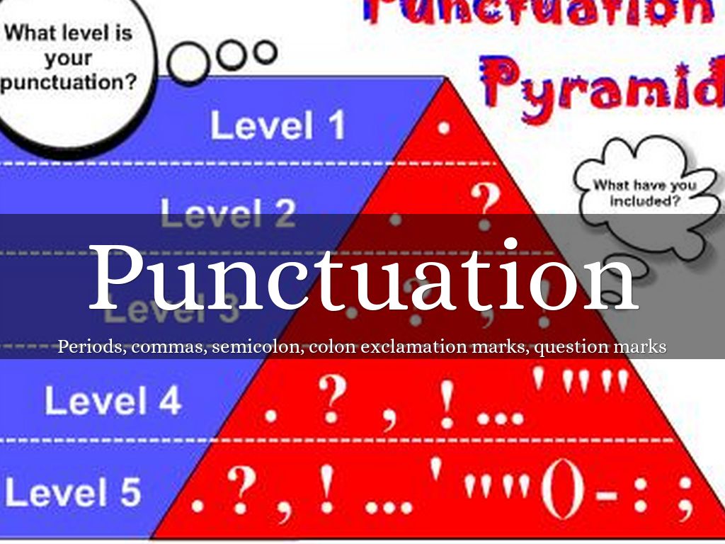 Periods, commas, semicolon, colon exclamation marks, question marks