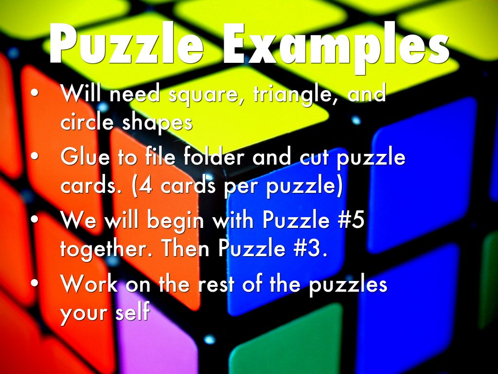 • We will begin with Puzzle #5 together. Then Puzzle #3.