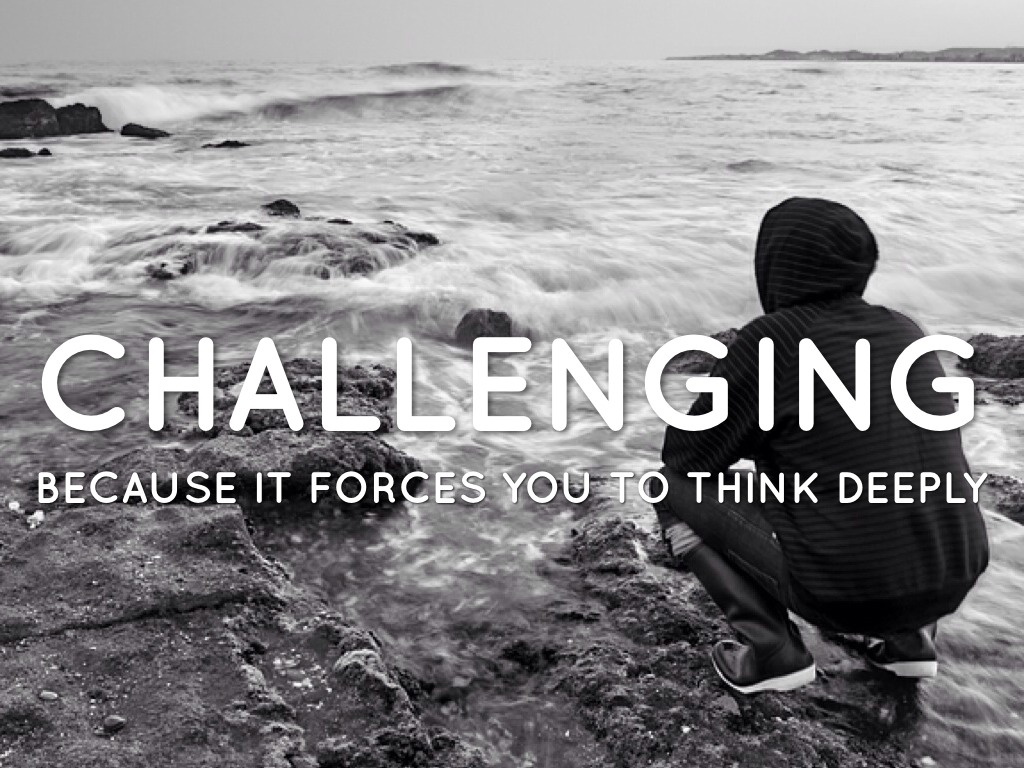 BECAUSE IT FORCES YOU TO THINK DEEPLY