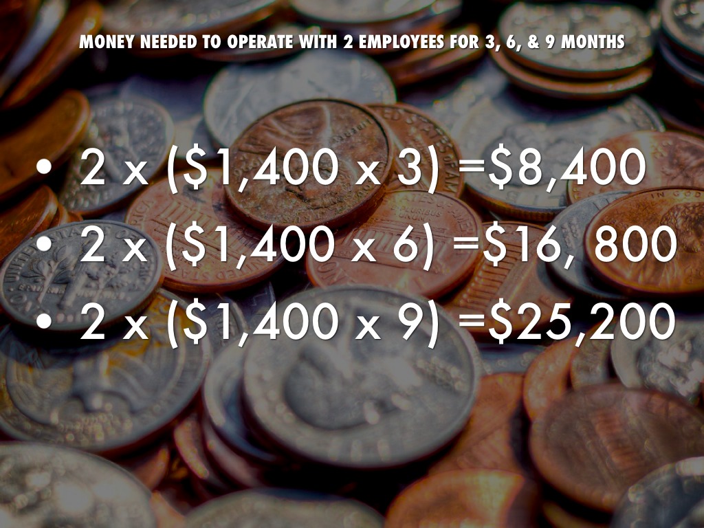 MONEY NEEDED TO OPERATE WITH 2 EMPLOYEES FOR 3, 6, & 9 MONTHS