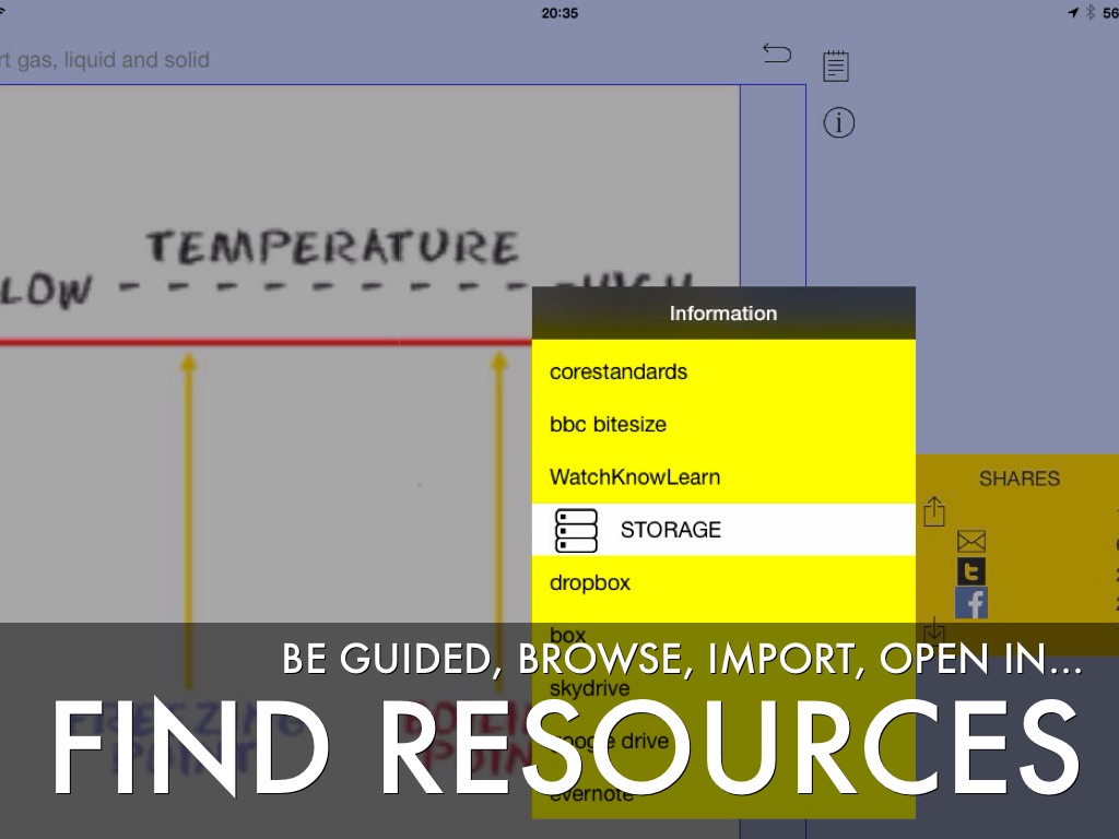The power is the combination of quickly finding the best resource and the ease of sharing that information. Built-in device to device using Bluetooth, wifi, airdrop. Use email or SMS, Facebook, Twitter, and cloud. Quickly access Dropbox and Edmodo. Many options to send AND receive.