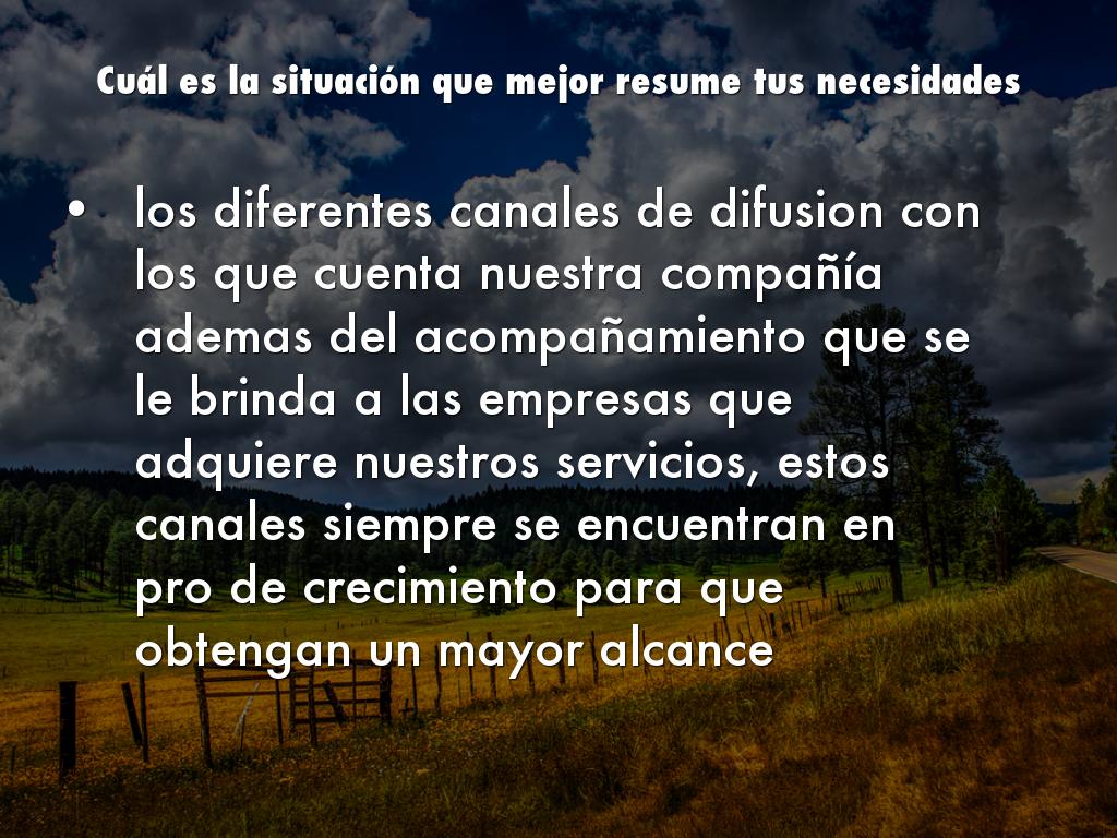 los diferentes canales de difusion con los que cuenta nuestra compañía ademas del acompañamiento que se le brinda a las empresas que adquiere nuestros servicios, estos canales siempre se encuentran en pro de crecimiento para que obtengan un mayor alcance