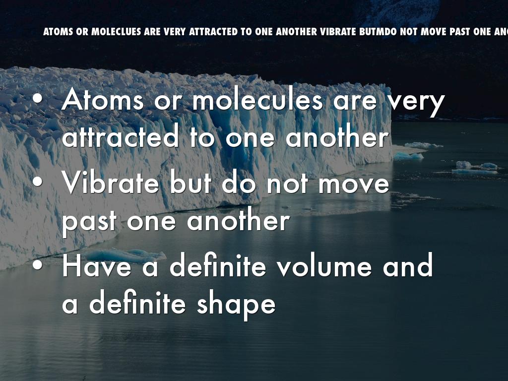 ATOMS OR MOLECLUES ARE VERY ATTRACTED TO ONE ANOTHER VIBRATE BUTMDO NOT MOVE PAST ONE ANOTHERH