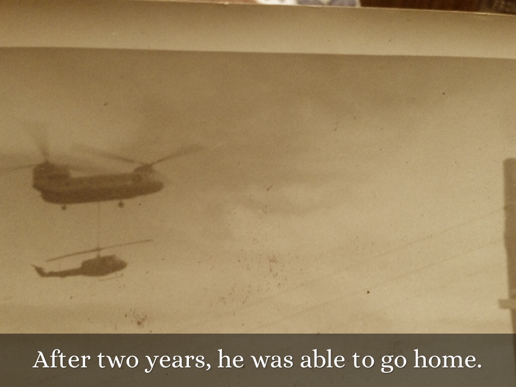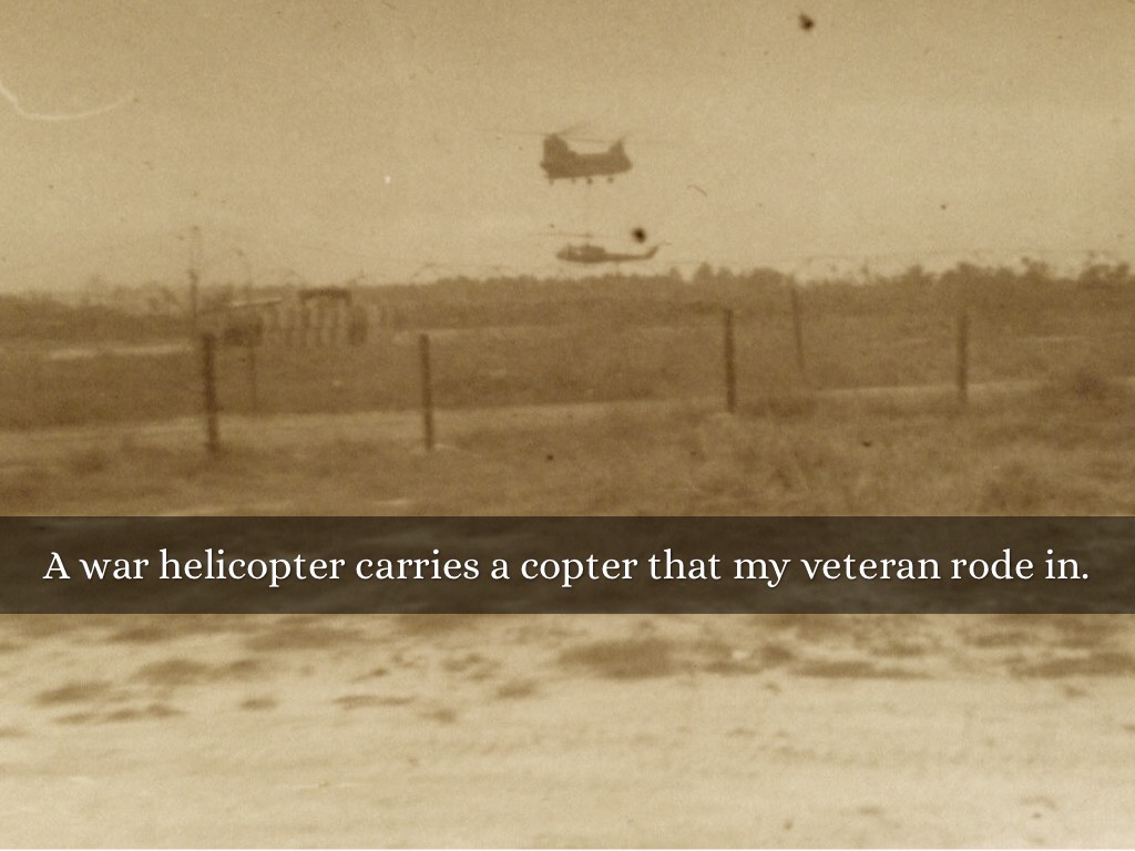 A war helicopter carries a copter that my veteran rode in.