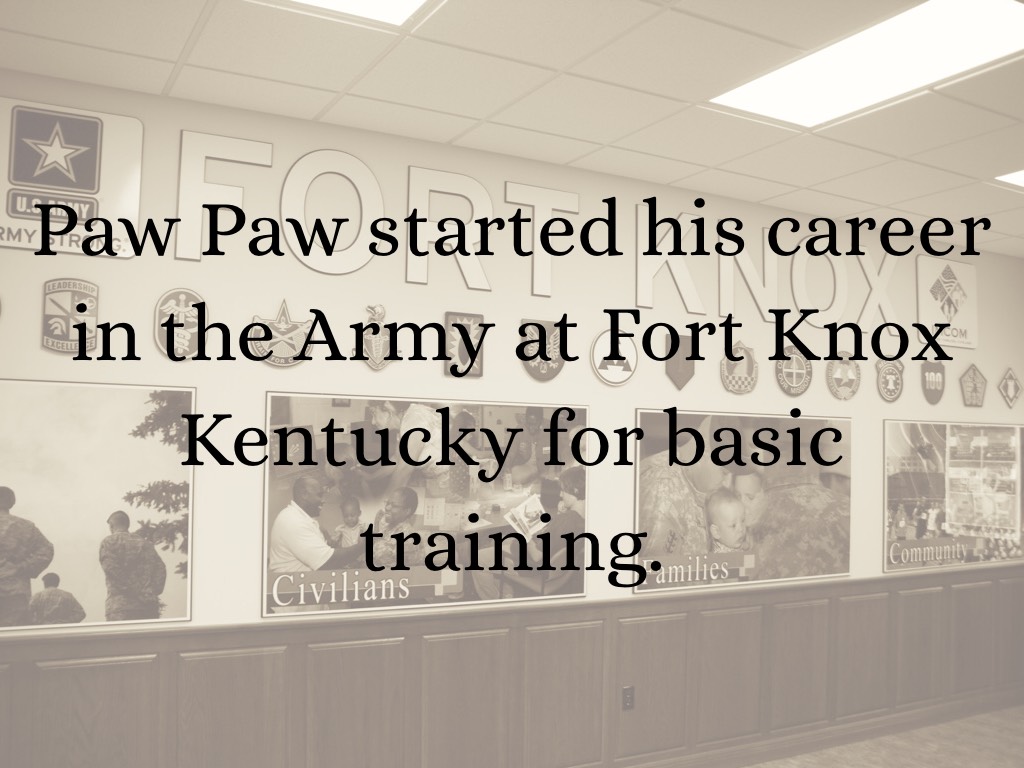 Paw Paw started his career in the Army at Fort Knox Kentucky for basic training.