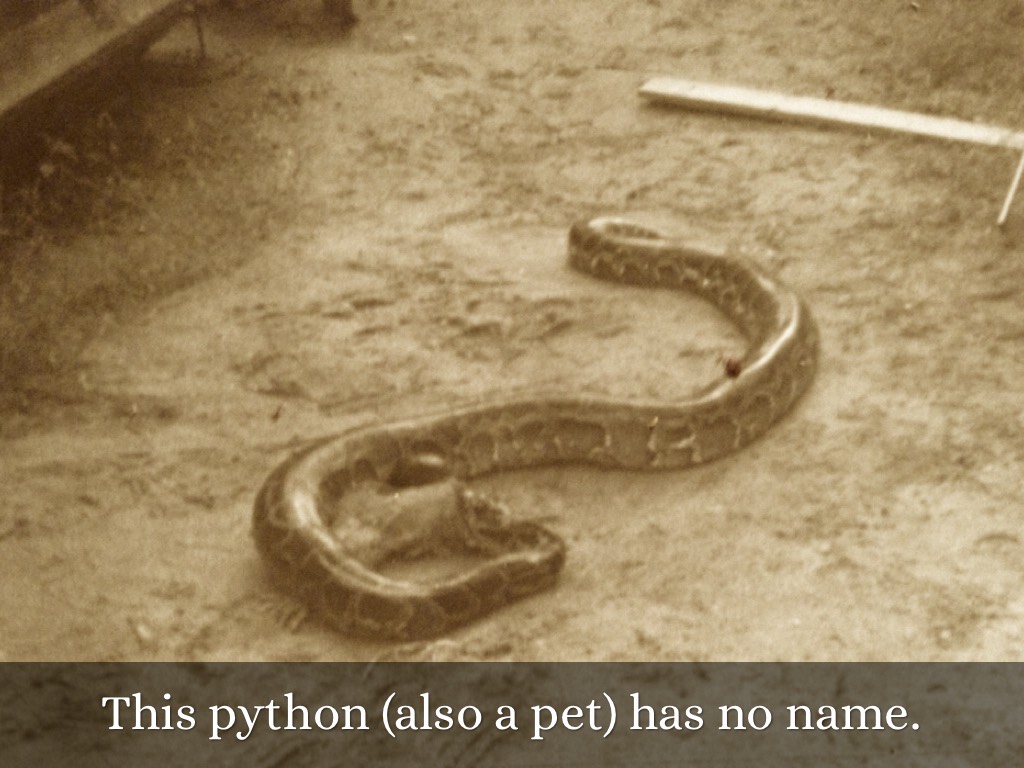 This python (also a pet) has no name.