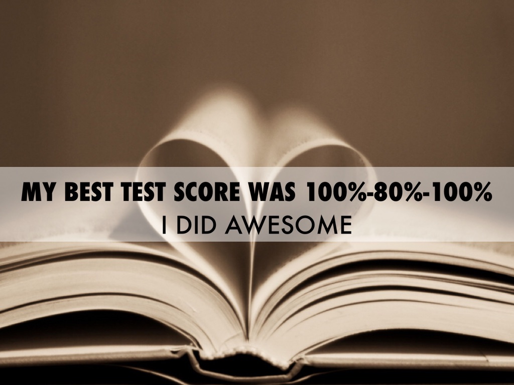 MY BEST TEST SCORE WAS 100%-80%-100%