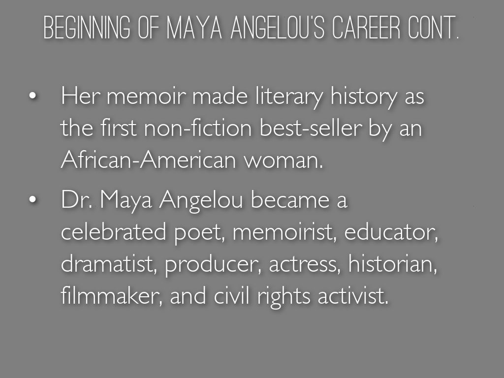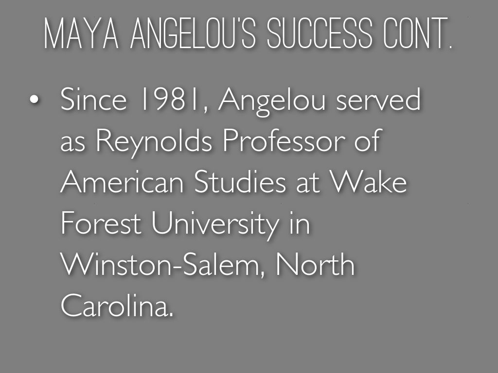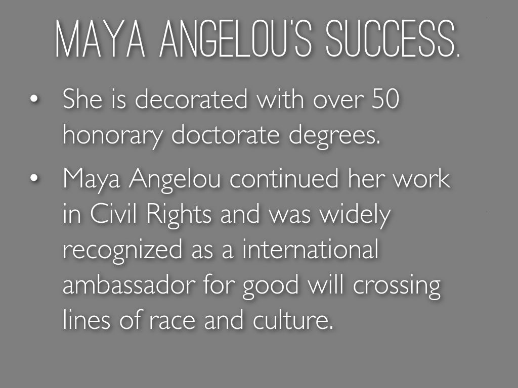 Maya Angelou continued her work in Civil Rights and was widely recognized as a international ambassador for good will crossing lines of race and culture.
