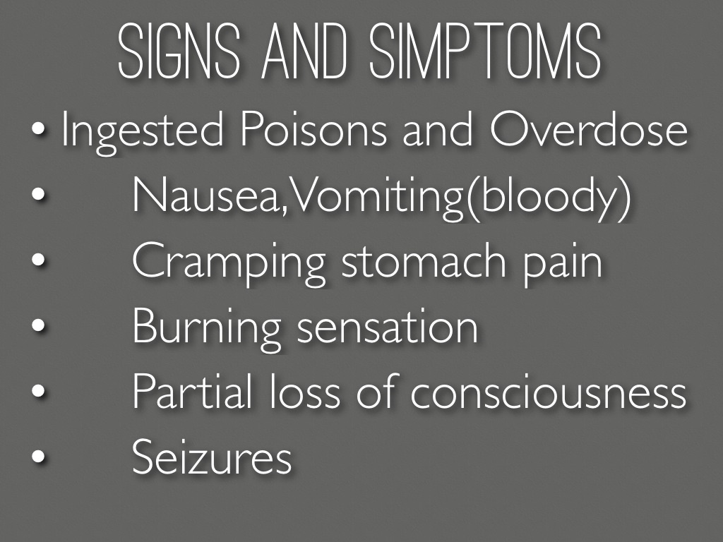 • Ingested Poisons and Overdose(chemical,drugs,plants,fungi,berries)