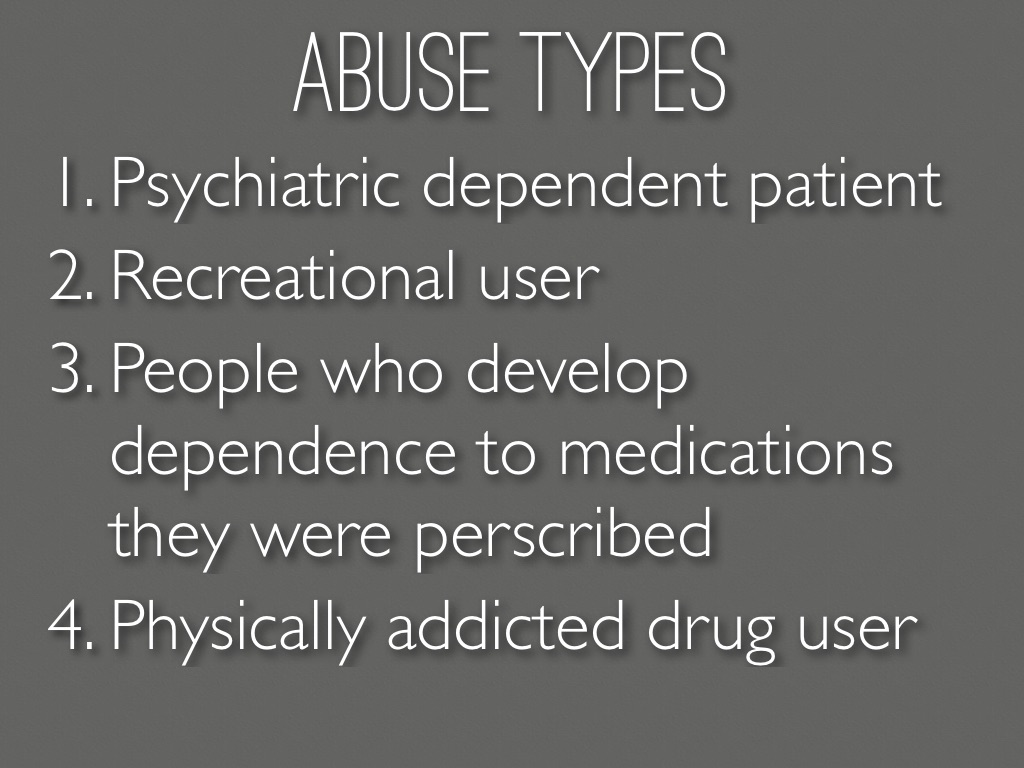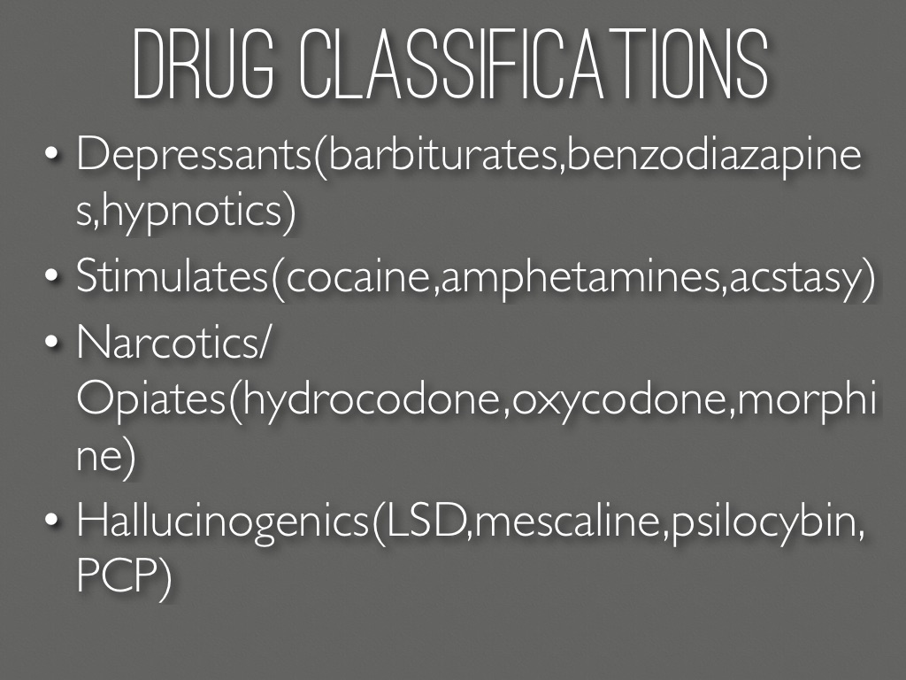 • Narcotics/Opiates(hydrocodone,oxycodone,morphine)