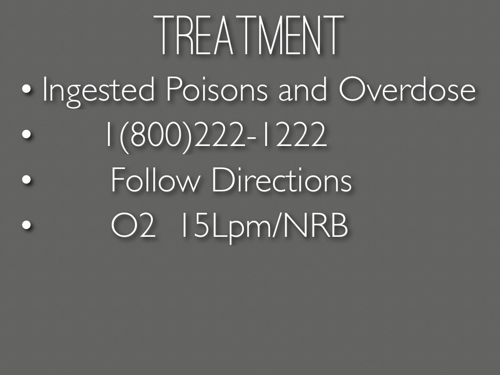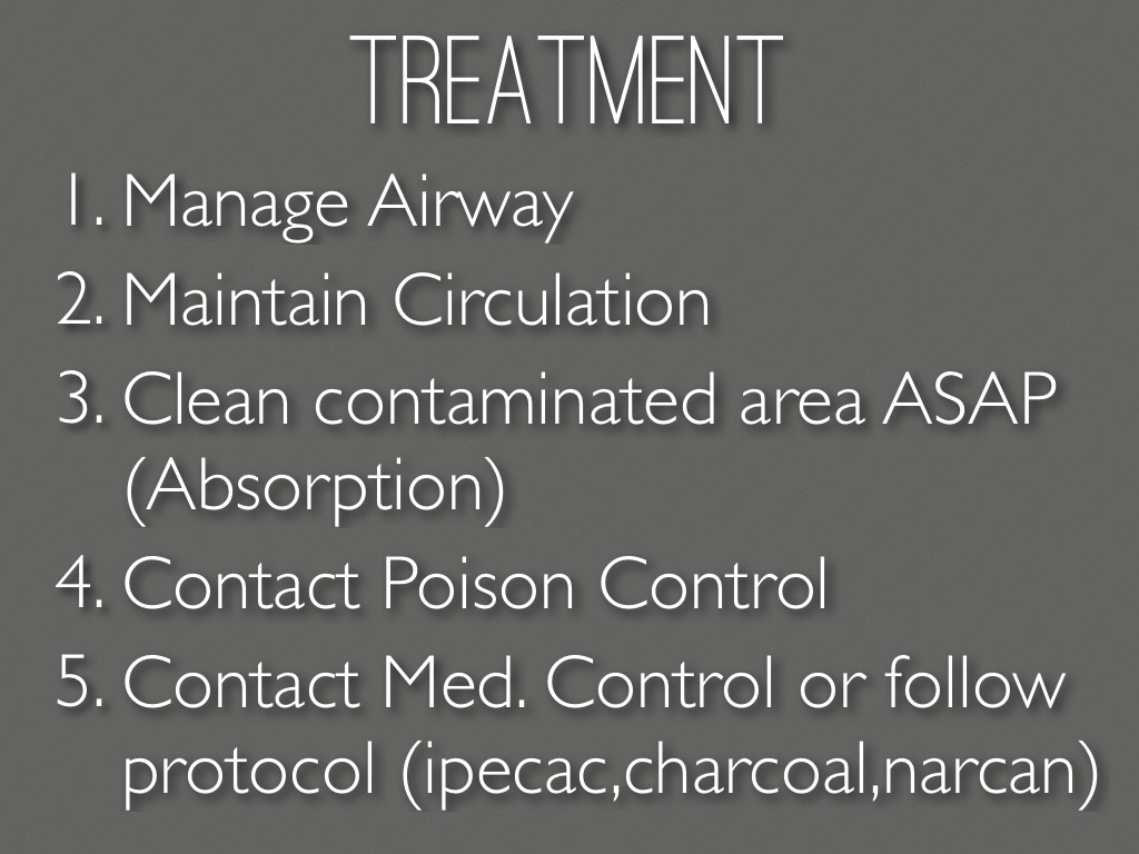• Contact Med. Control or follow protocol (ipecac,charcoal,narcan)