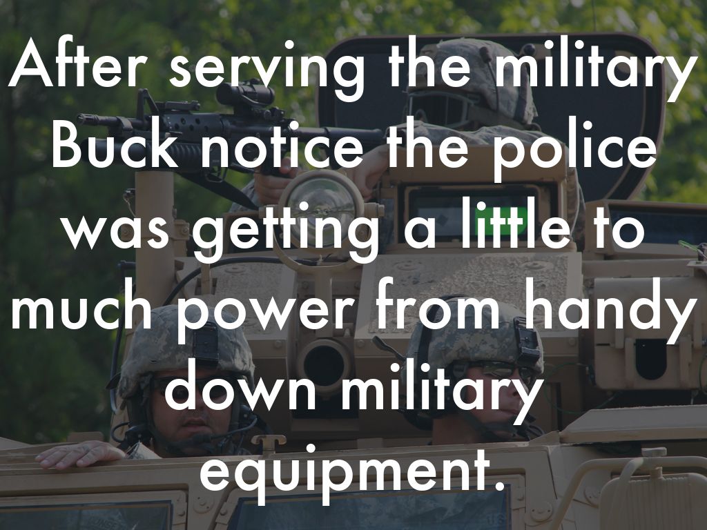 After serving the military Buck notice the police was getting a little to much power from handy down military equipment.