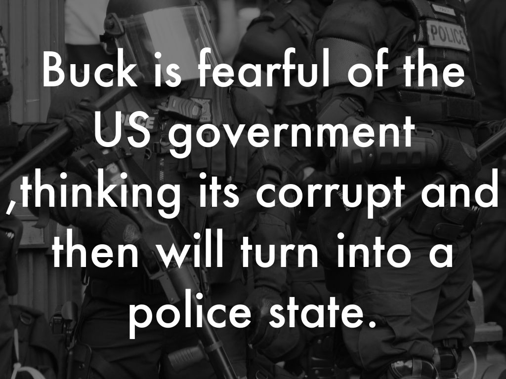 Buck is fearful of the US government ,thinking its corrupt and then will turn into a police state.