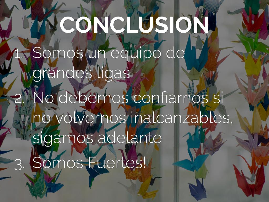 No debemos confiarnos si no volvernos inalcanzables, sigamos adelante