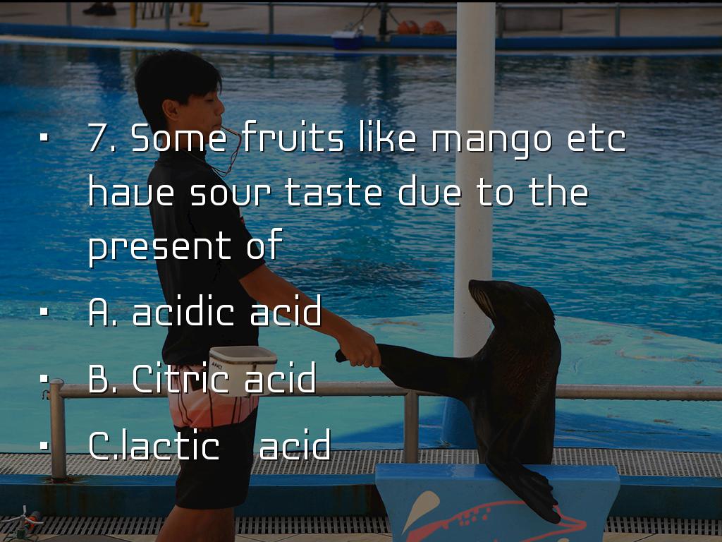7. Some fruits like mango etc have sour taste due to the present of