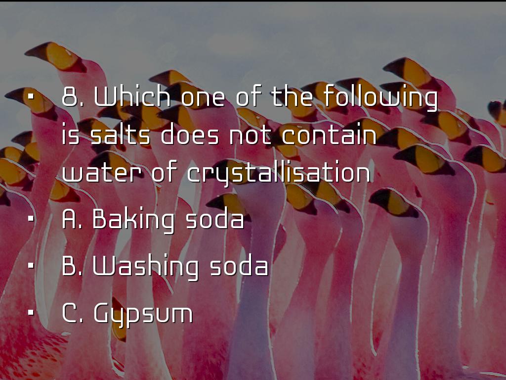 8. Which one of the following is salts does not contain water of crystallisation