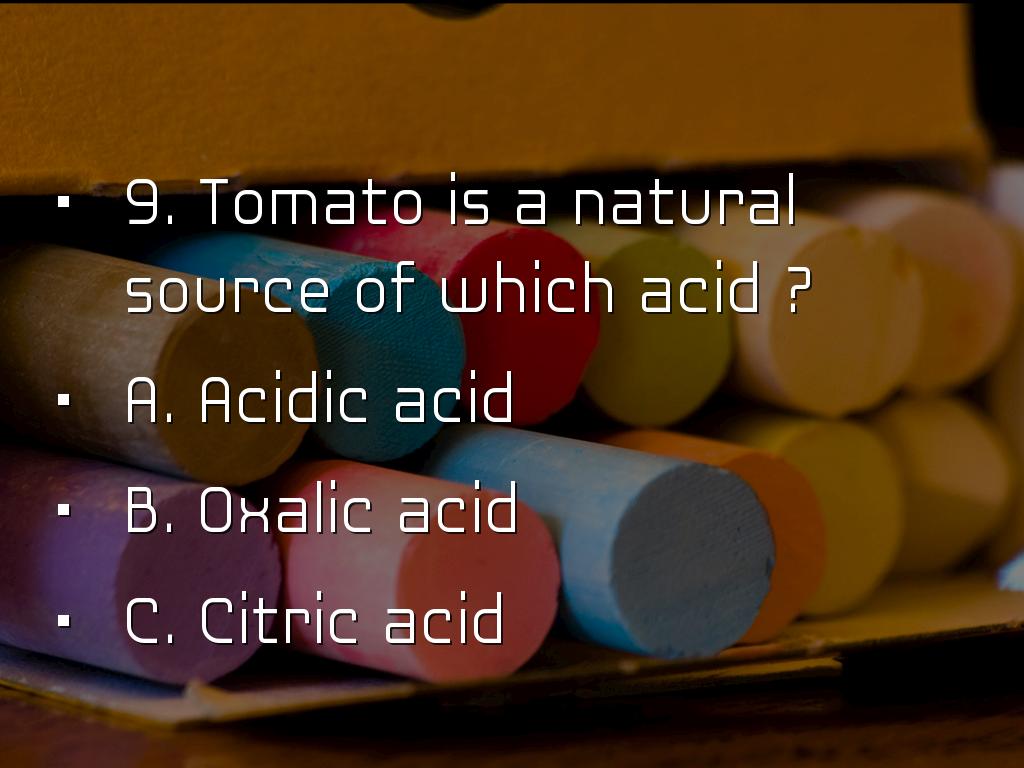 9. Tomato is a natural source of which acid ?