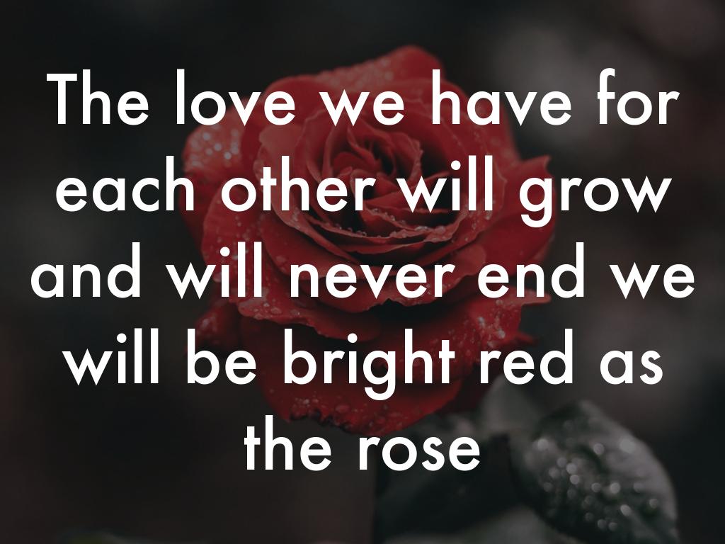 The love we have for each other will grow and will never end we will be bright red as the rose
