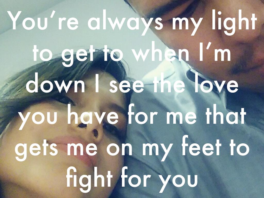 You’re always my light to get to when I’m down I see the love you have for me that gets me on my feet to fight for you
