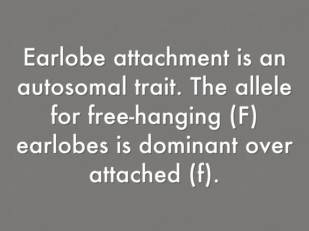Earlobe attachment is an autosomal trait. The allele for free-hanging (F) earlobes is dominant over attached (f).