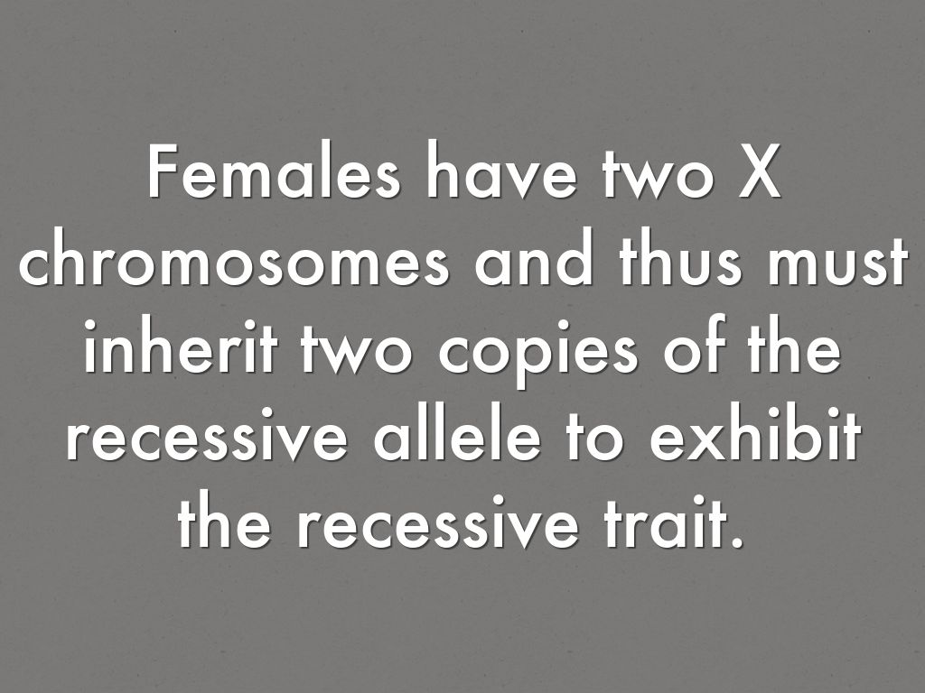 Females have two X chromosomes and thus must inherit two copies of the recessive allele to exhibit the recessive trait.