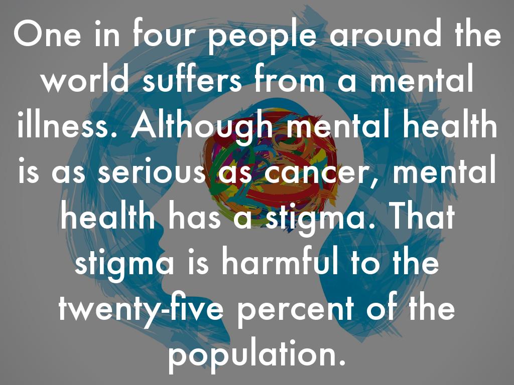 One in four people around the world suffers from a mental illness. Although mental health is as serious as cancer, mental health has a stigma. That stigma is harmful to the twenty-five percent of the population.