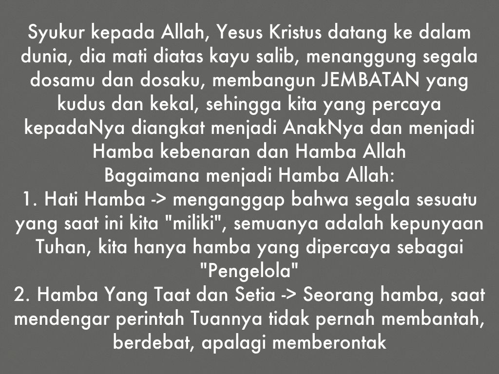 2. Hamba Yang Taat dan Setia -> Seorang hamba, saat mendengar perintah Tuannya tidak pernah membantah, berdebat, apalagi memberontak
