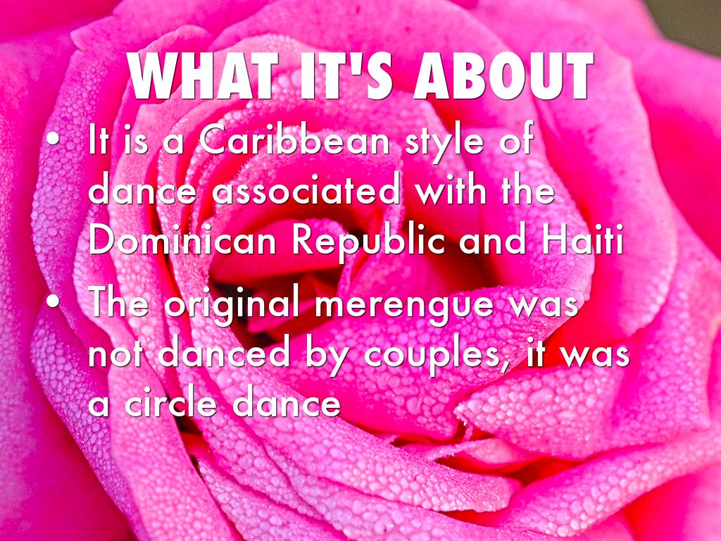 It is a Caribbean style of dance associated with the Dominican Republic and Haiti