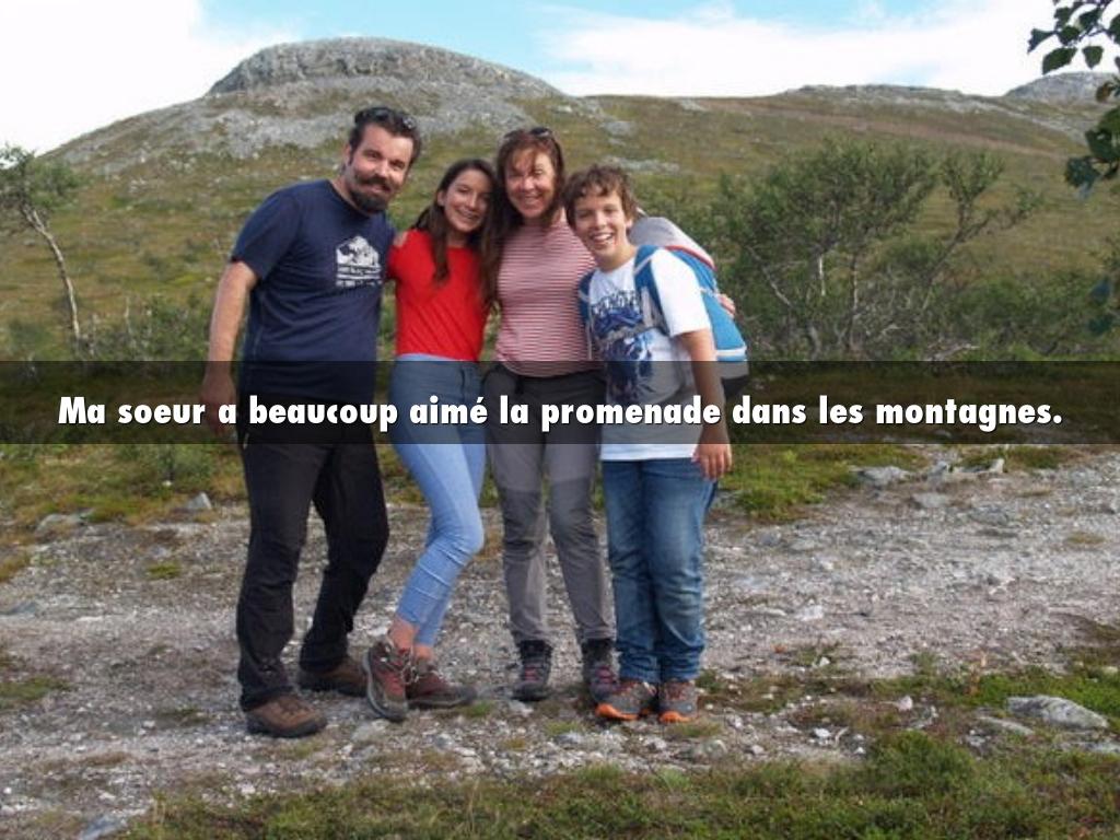 Ma soeur a beaucoup aimé la promenade dans les montagnes.