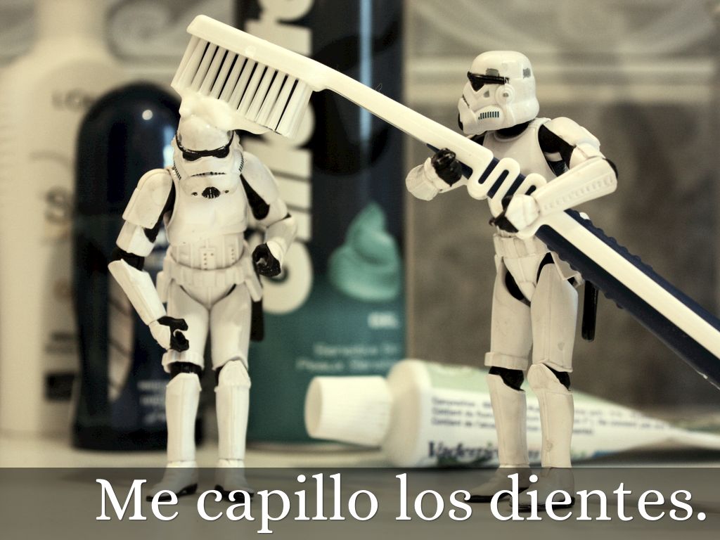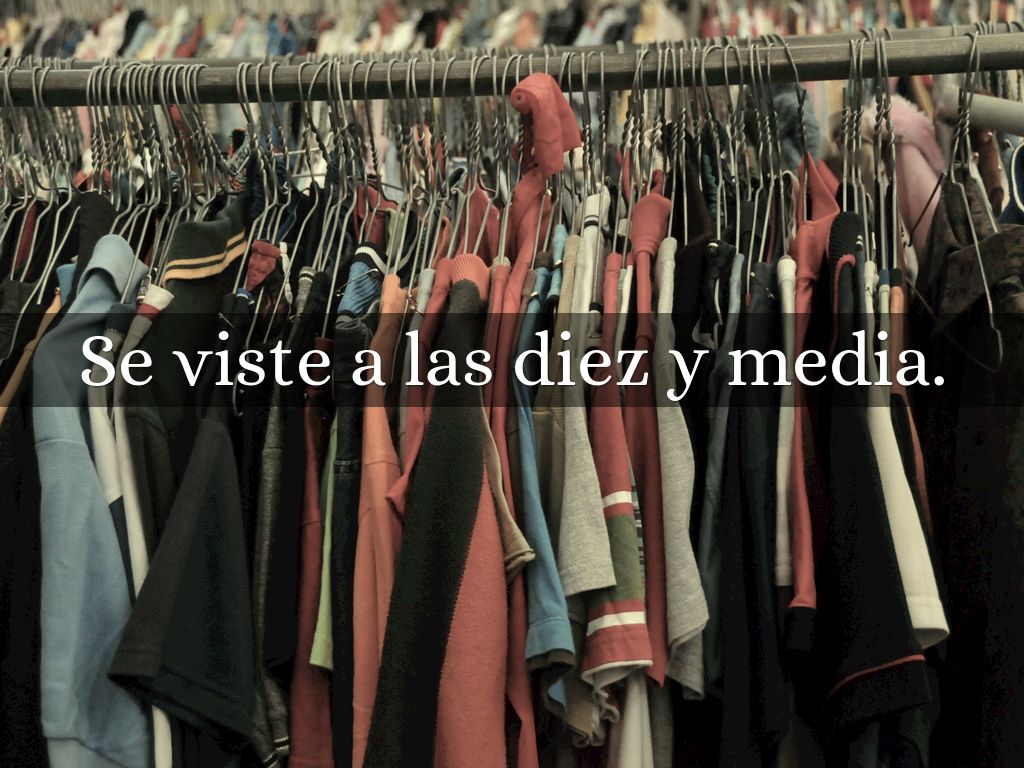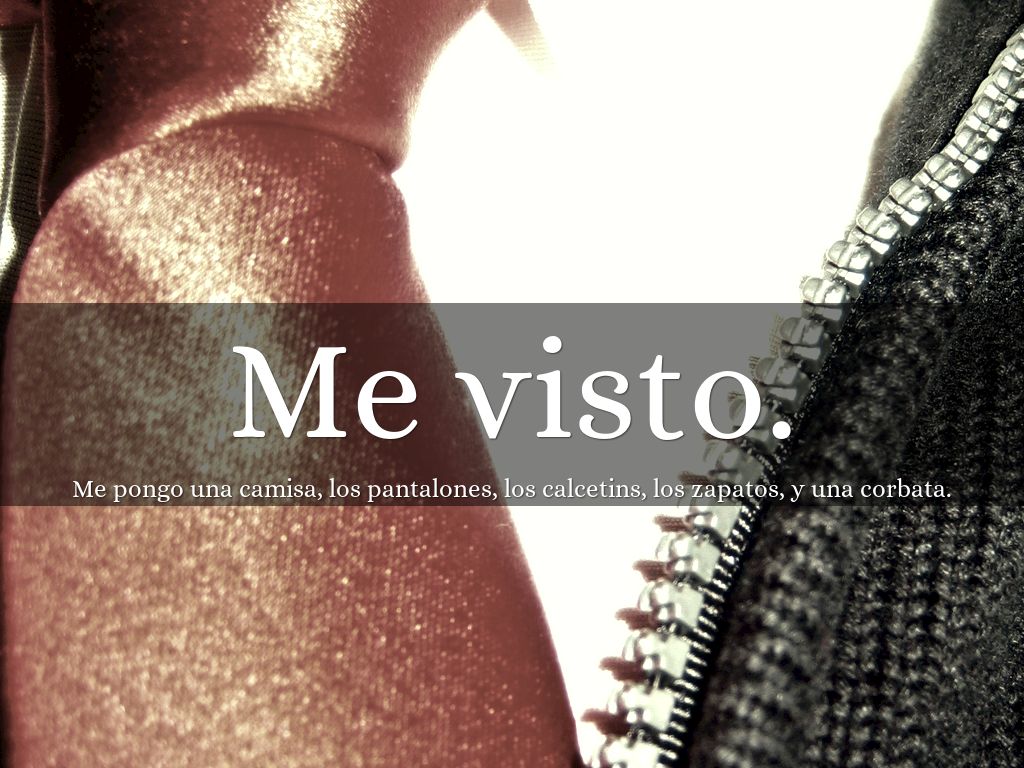 Me pongo una camisa, los pantalones, los calcetins, los zapatos, y una corbata.