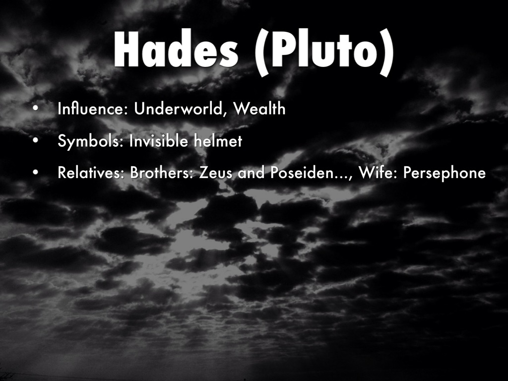 Relatives: Brothers: Zeus and Poseiden..., Wife: Persephone