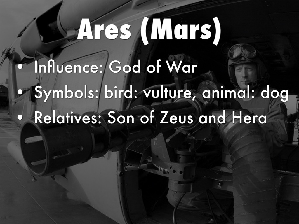 Relatives: Parents: Zeus, Hera, Wife: Aphrodite