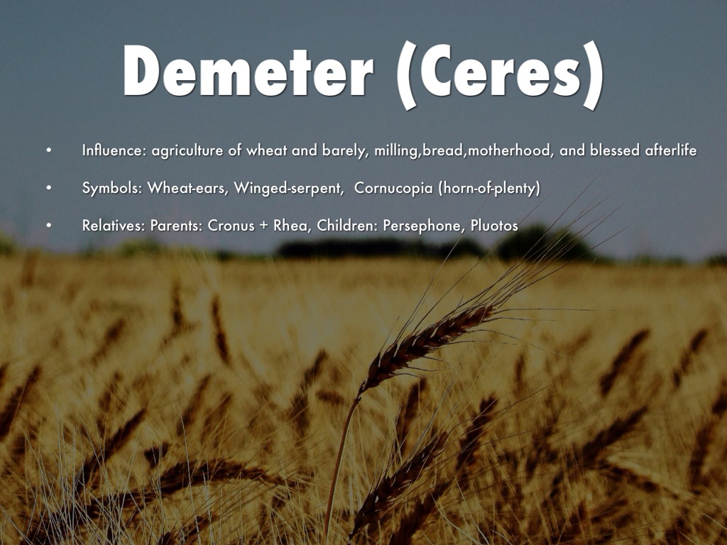 Influence: agriculture of wheat and barely, milling,bread,motherhood, and blessed afterlife