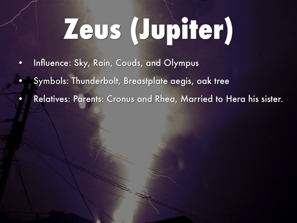Relatives: Parents: Cronus and Rhea, Married to Hera his sister.
