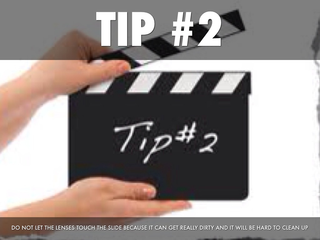 DO NOT LET THE LENSES TOUCH THE SLIDE BECAUSE IT CAN GET REALLY DIRTY AND IT WILL BE HARD TO CLEAN UP