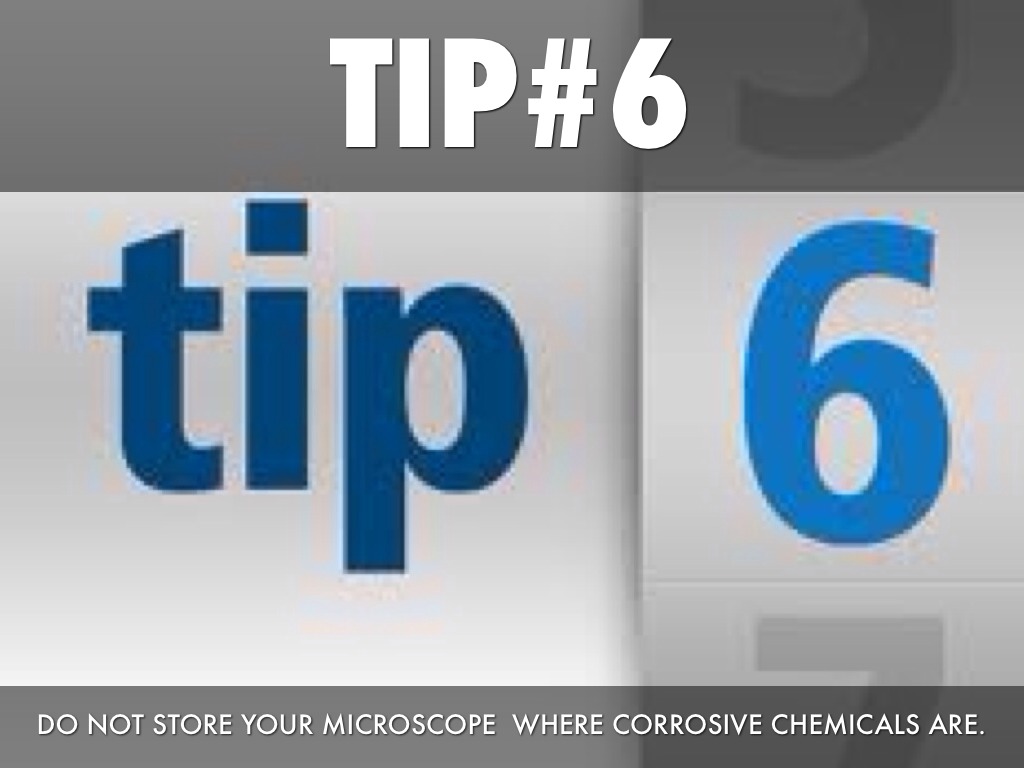 DO NOT STORE YOUR MICROSCOPE WHERE corrosive CHEMICALS ARE.