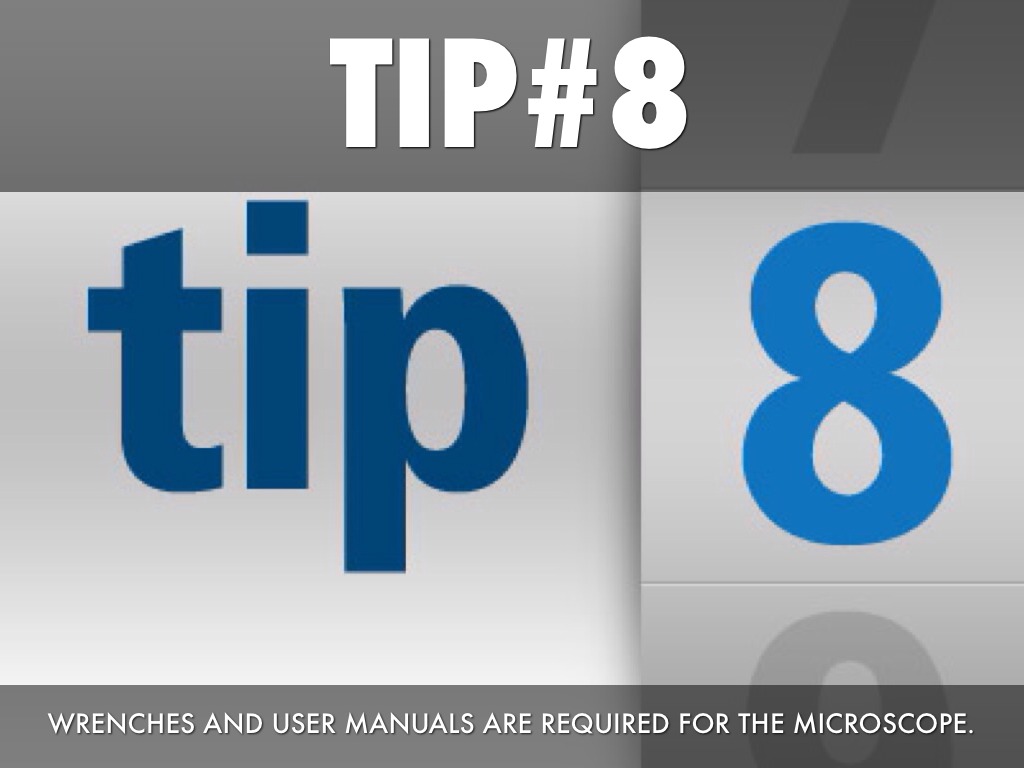 WRENCHES AND USER MANUALS ARE REQUIRED FOR THE MICROSCOPE.