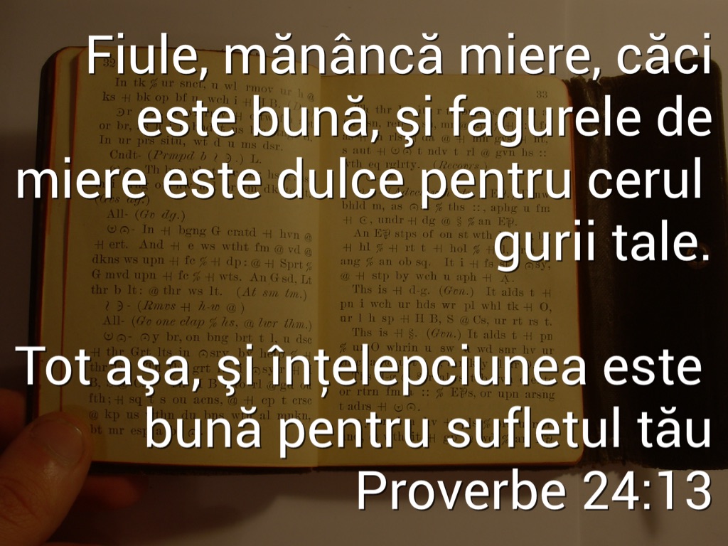 Fiule, mănâncă miere, căci este bună, şi fagurele de miere este dulce pentru cerul gurii tale.