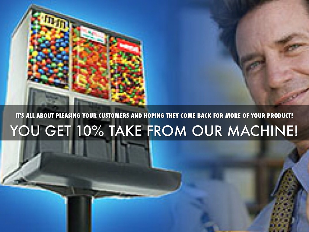 Sweets for the taking and you get 10% profit from my vending machine. No labor involve for you. Just watch the quarters drop!