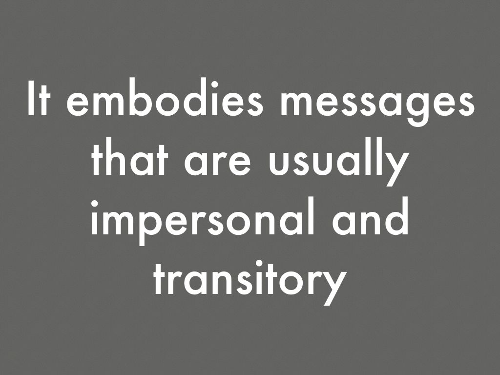 It embodies messages that are usually impersonal and transitory