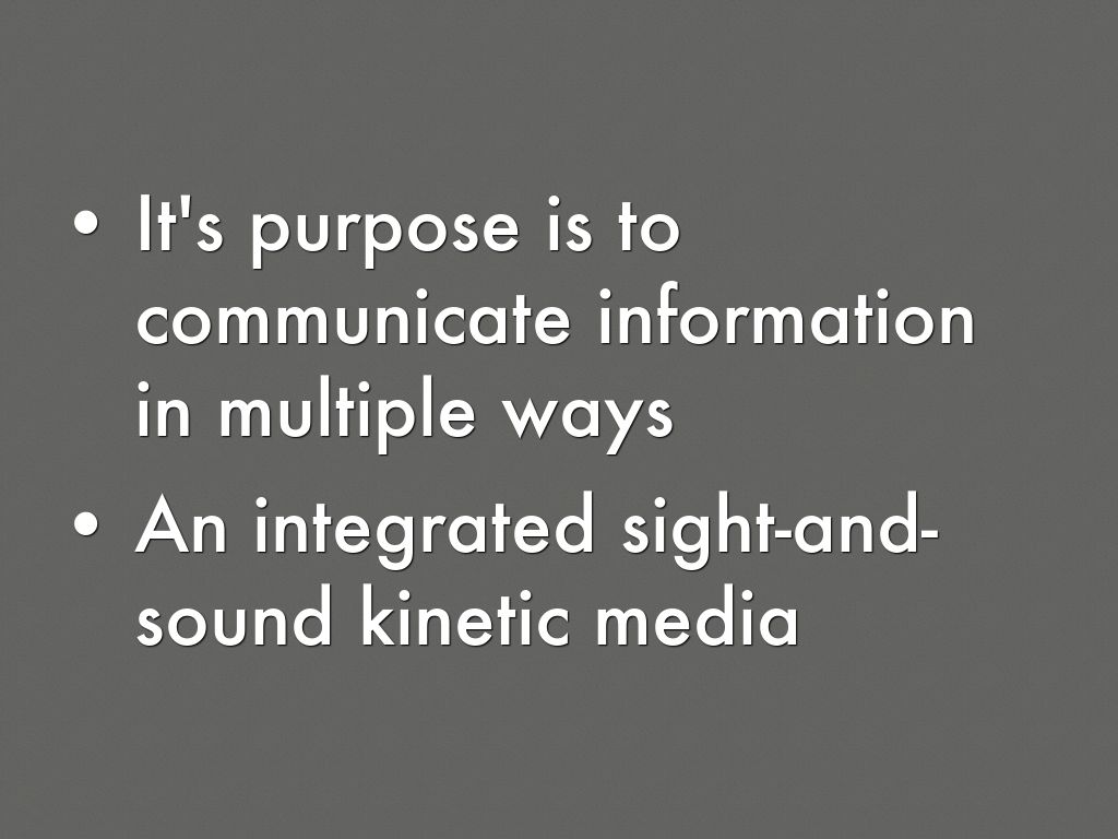 - It's purpose is to communicate information in multiple ways