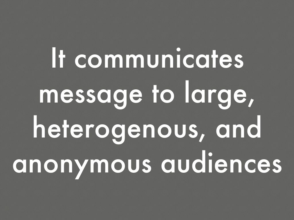 It communicates message to large, heterogenous, and anonymous audiences